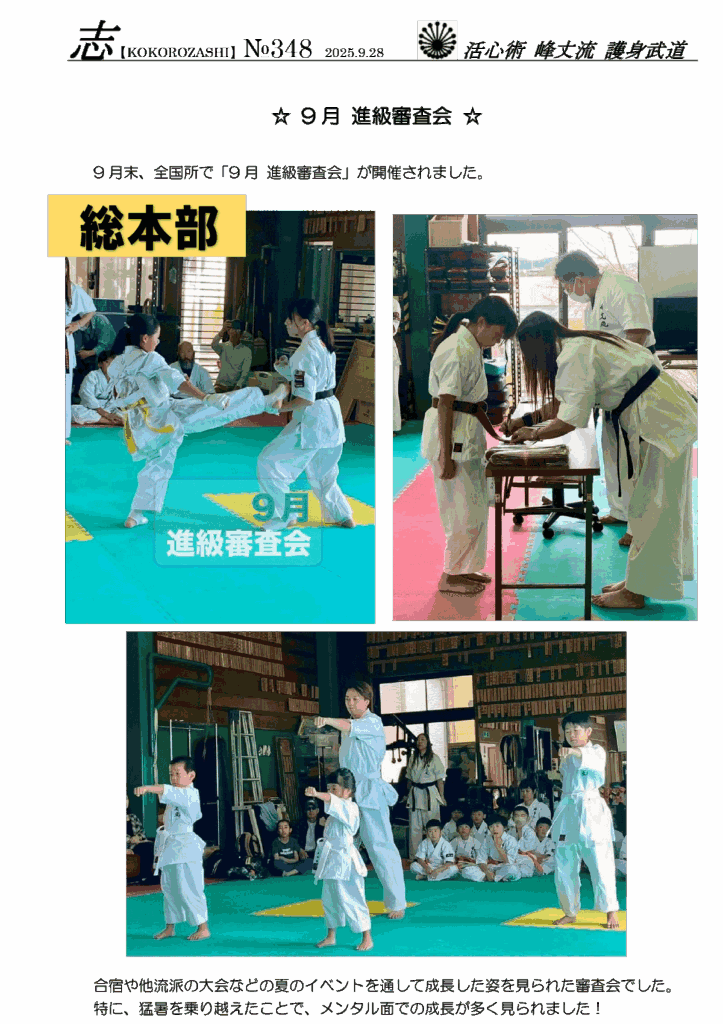 活動報告「志」No.348では、全国各所で行われた「9月 進級審査会」の様子をご報告します。